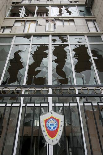 4月8日,吉尔吉斯斯坦首都比什凯克的一栋大楼在冲突中被砸。吉尔吉斯斯坦反对派组建的“人民信任政府”负责人奥通巴耶娃当日在比什凯克宣布,以她为总理的临时政府成立。新华社/路透