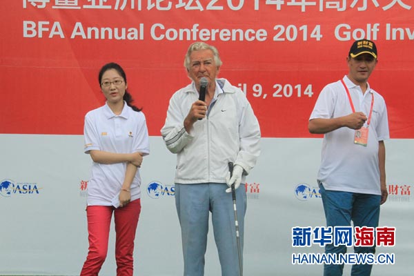 博鳌亚洲论坛2014年年会“新财富杯”高尔夫邀请赛于4月9日在博鳌亚洲论坛国际会议中心高尔夫球会正式开赛。参加年会的80多名政界要人、商界精英满怀兴致地下场进行球技切磋,在博鳌蓝天碧茵之间,展开高尔夫18洞精英间的“较量”。