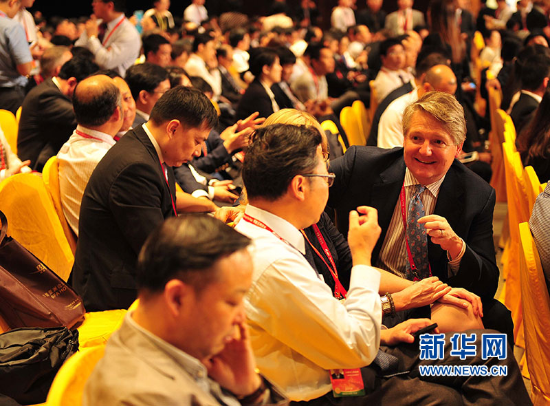4月10日,博鳌亚洲论坛嘉宾进入主会场,纷纷拍照留念。新华社记者 郭程 摄