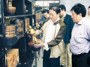 毕世祥考察牧民定居行动计划牧民生活设施生产情况。﹙资料图片﹚