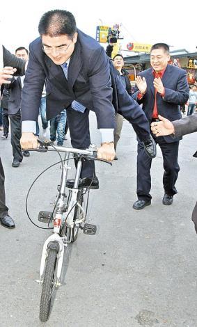 紫南宫主委庄秋安送陈光标12颗金鸡蛋内附一百元新台币红包,强调这是“钱母”,庇佑陈董钱滚钱。陈光标欣然接受。在庙方带领下,陈光标参观五星级厕所时,见到店家门前有折叠式小脚踏车,一时童心大起,表演单脚骑乘特技。