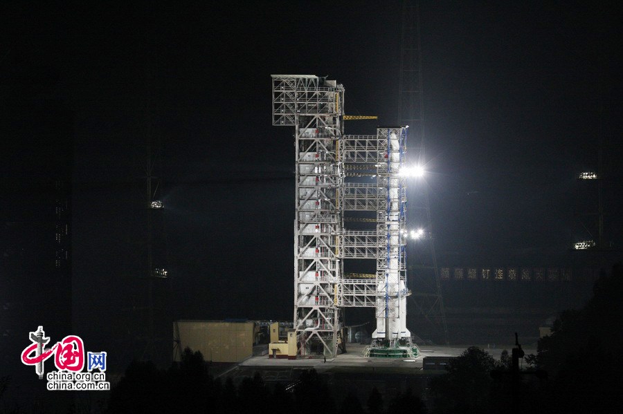2013年12月1日,西昌卫星发射中心发射塔架:夜幕下的西昌卫星发射中心发射塔架“嫦娥三号”探测器即将在此升空。中国网记者 郑亮 摄影