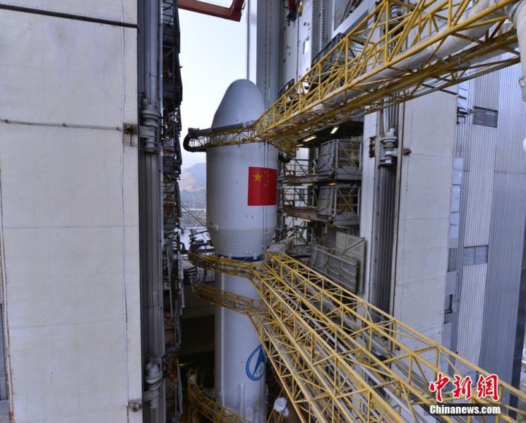 12月1日下午5时,静卧在勤务塔中的嫦娥三号。中新社发 秦宪安 摄