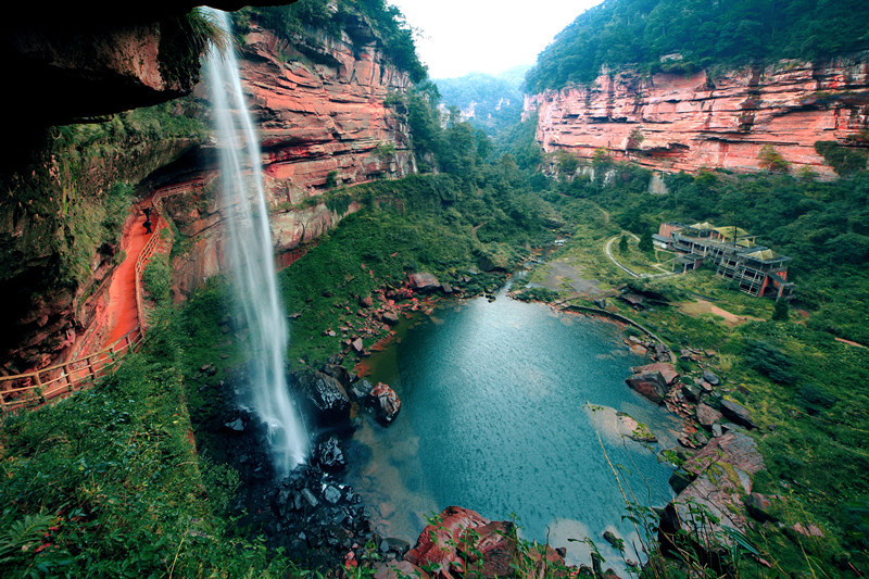 水口寺景区因其融合了瀑布、丹霞地貌、森林、峡谷、深潭、彩虹等多种景观,成为四面山西部景区中,景致最佳的复合型景区之一。