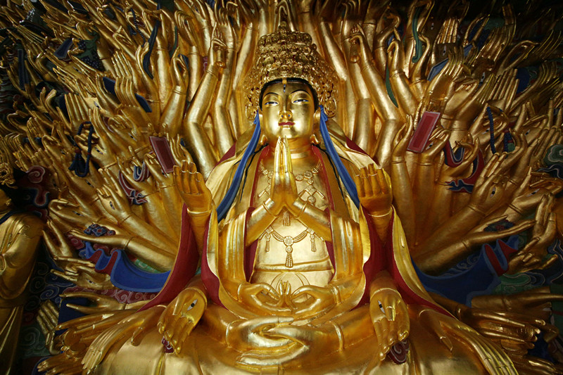 2015年5月5日,重庆市大足区宝顶山,实施抢救性保护后的千手观音造像。