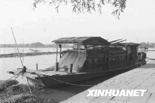 资料图片:1921年7月1日,中国共产党成立。这是中国历史上开天辟地的大事件。根据新发现的史料和考证结果,确定中国共产党第一次全国代表大会于1921年7月23日在上海法租界望志路106号召开,7月31日最后一天会议转移到浙江嘉兴南湖举行。中国共产党第一次代表大会的最后一天会议是在浙江省嘉兴市南湖中一艘画舫上召开的。这是按当年画舫仿造的画舫,停在南湖上供游人瞻仰。 新华社发