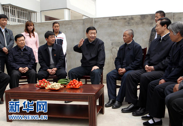 安徽是农业大省,安徽小岗村是我国农村联产承包责任制的发源地。习近平对安徽农村改革发展十分关心,8日上午一下飞机就来到阜阳市颍州区西湖景区街道白行村。他认真察看村党务公开栏、村务公开栏和农家书屋、村卫生室,仔细询问这里发展经济、服务群众、推进新农村建设的情况,对他们取得的成绩给予充分肯定。在村民倪泽民的院子里,习近平同闻讯而来的乡亲们围坐在一起拉家常。他指出,推进农村改革发展和新农村建设,要深入贯彻科学发展观,体现以人为本理念,千方百计增加农民收入。太和县旧县镇张槐村头,绿油油的万亩小麦一望无际。习近平走进田间,拿起麦苗仔细察看长势,询问机井的水位,与全国劳动模范、种植大户徐淙祥以及正在忙农活的村民亲切交谈。得知老徐管理的这片地去年亩产达到700多公斤、比平均亩产高出200多公斤,习近平十分高兴,鼓励他继续攻关小麦高产关键技术,为国家粮食生产多做贡献。