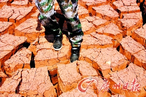 云南文山龟裂的土地可以陷进一只脚。记者黄佩 通讯员王国礼 摄