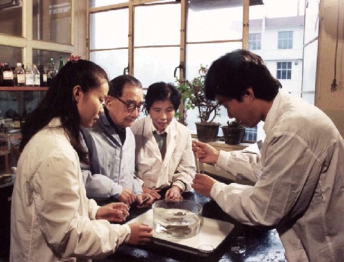 这是1993年,贝时璋在指导青年人做实验 (资料照片)