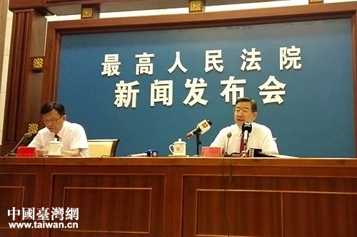 最高人民法院30日在北京召开新闻发布会,介绍人民法院涉台司法互助工作情况,并对外公布了新出台的两则涉台司法互助司法解释。(中国台湾网 王伟 摄)