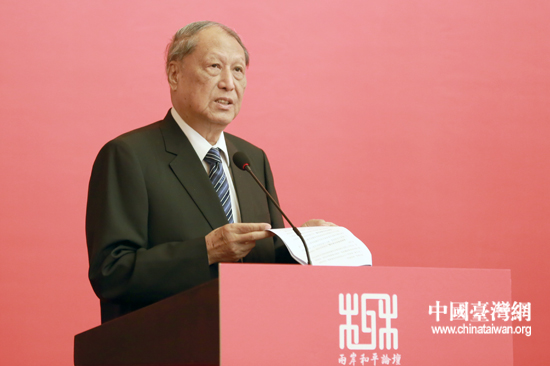 10月11日,上海,全国台湾研究会会长成思危在首届两岸和平论坛上致辞。(中国台湾网 田云鹏 摄)