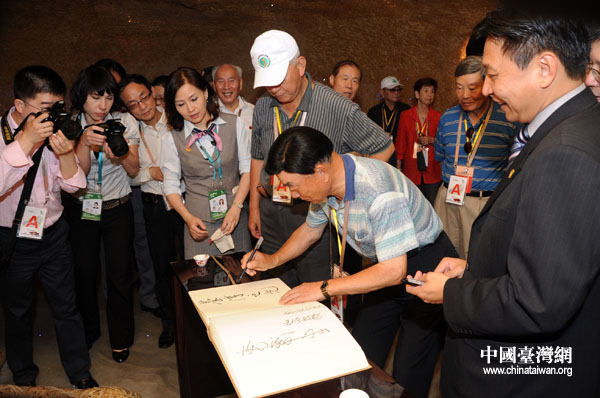 随后在台湾馆的参观中,两岸将军共同点下许愿心灯祈福,祝福国泰民安,人人美梦成真。黄幸强等将军们更挥毫为台湾馆题字,赞许小而美的台湾馆在世博舞台上为台湾争光。 (记者 李徽)