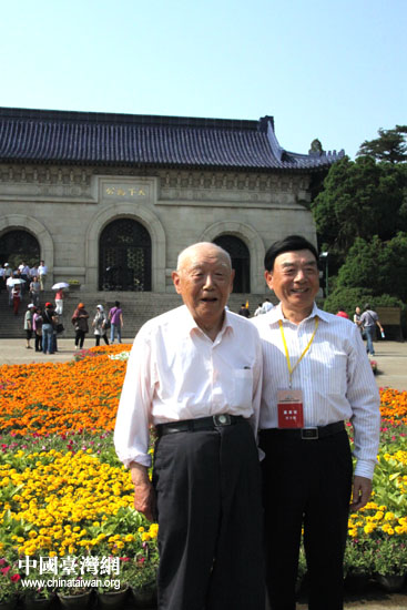 中国台湾网5月25日南京消息 正在南京参加第二届两岸退役将军高尔夫邀请赛的原台宪兵司令王诣典中将24日随团拜谒中山陵时,巧遇从美国归来拜谒的前“台湾陆军官校”教务长窦懿伦。窦懿伦曾是王诣典当排长期间的的证婚人,如今天各一方多年的二人在大陆偶遇,不禁感慨万千。