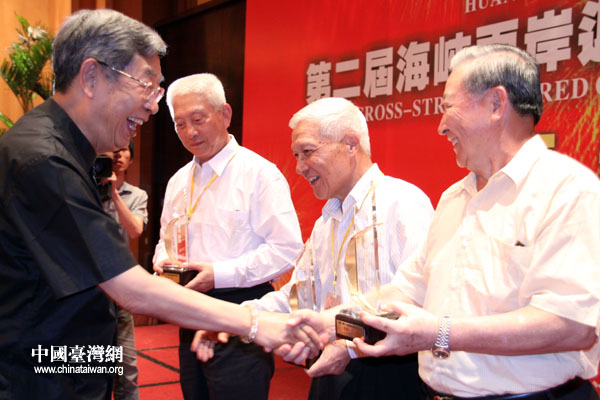 原全国人大常委会副委员长许嘉璐为比赛中获奖的台湾退役将军颁奖(中国台湾网 李徽 摄)