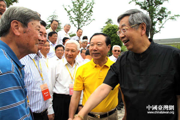 许嘉璐与来自台湾的退役将军们亲切握手(中国台湾网 李徽 摄)