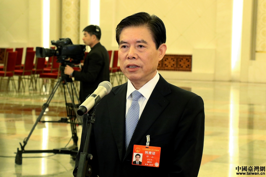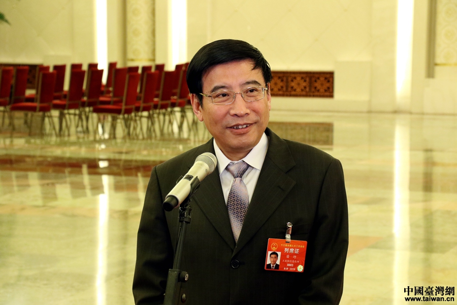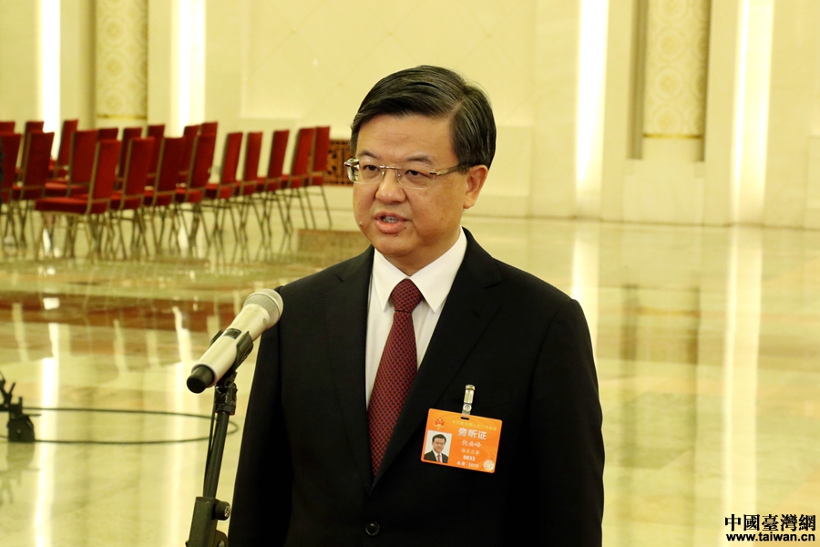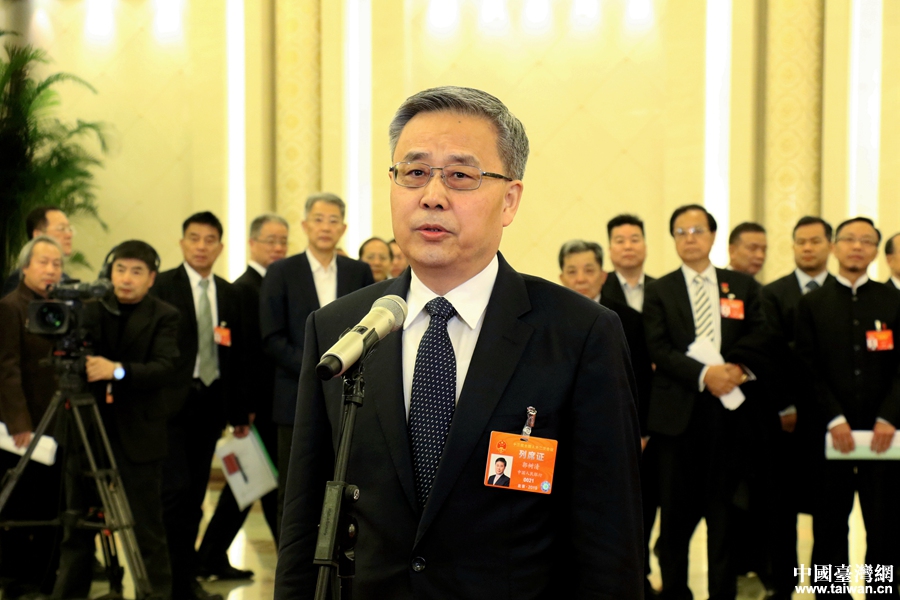 中共中央台办、国务院台办主任刘结一在“部长通道”接受采访。(中国台湾网 尹赛楠 摄)