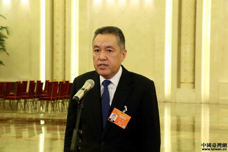 工业和信息化部部长苗圩在“部长通道”接受采访。(中国台湾网 尹赛楠 摄)
