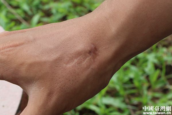 孔凡宾手腕上的伤疤。(中国台湾网 尹赛楠 摄)