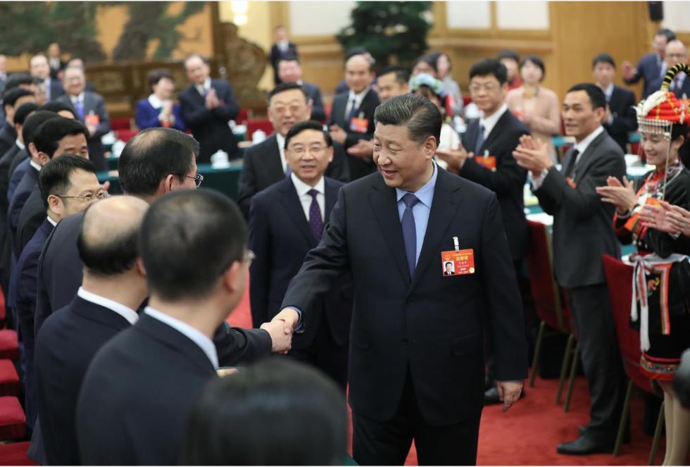 3月10日下午,中共中央总书记、国家主席、中央军委主席习近平参加十三届全国人大二次会议福建代表团审议。(图片来源:央视新闻客户端)