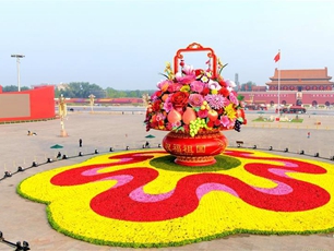 7小时组装!18米巨型“花果篮”亮相天安门