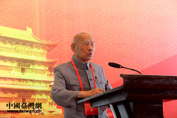 全国政协副主席、民革中央常务副主席、中国和平统一促进会副会长郑建邦致辞。 (中国台湾网 全志强 摄)