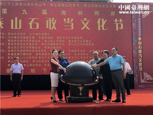 9月5日上午,第九届“海峡两岸泰山石敢当文化节”在泰安市泰山地下龙宫景区开幕。(图片来源:泰山区台办)
