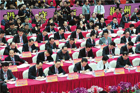 首届客家文化艺术节开幕式上举行的梅州招商引资项目签约仪式。(图片来源:梅州日报)