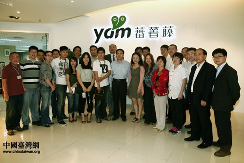 “康师傅桥——大陆网络媒体高层赴台交流参访团”一行与台湾yam蕃薯藤网站同行合影。(中国台湾网 陈佳慧 摄)