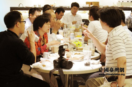 两岸网络媒体人在台湾小吃的“满汉全席”中尽情交流。(来源:台湾蕃薯藤网站)