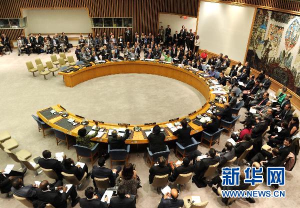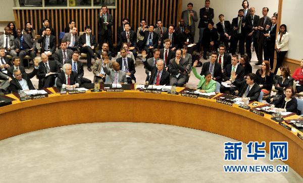 3月17日,在美国纽约联合国总部,部分安理会理事国代表举手投赞成票。当日,联合国安理会通过决议,决定在利比亚设立禁飞区。新华社记者申宏摄