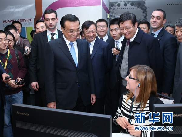 11月27日,正在罗马尼亚访问的国务院总理李克强参观中国华为技术罗马尼亚公司。这是李克强同当地员工亲切交谈。新华社记者 庞兴雷摄