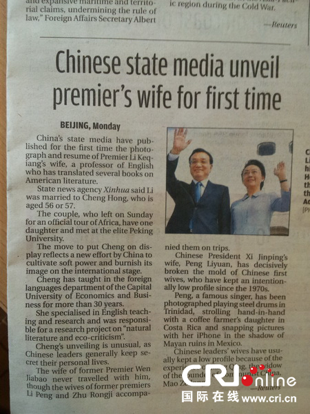 肯尼亚《旗帜报》报道李克强夫人程虹与总理首次出访。