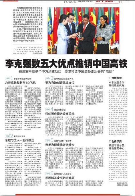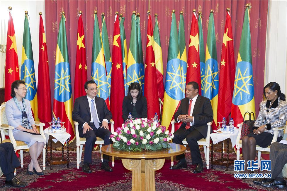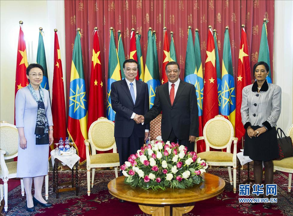 5月6日,中国国务院总理李克强在亚的斯亚贝巴国家宫会见埃塞俄比亚总统穆拉图。 李克强总理夫人程虹、穆拉图总统夫人梅阿扎参加会见。新华社记者王晔摄"