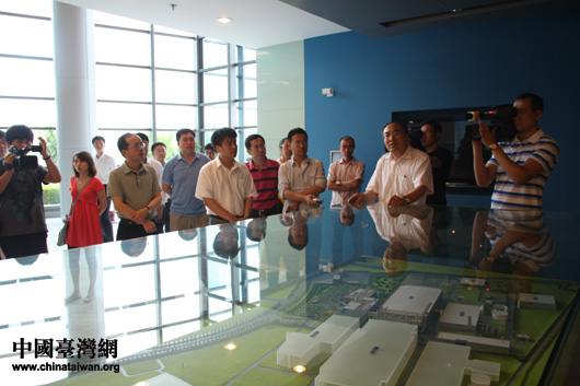 英特尔芯片厂负责人向全国网络媒体记者介绍该厂基本情况(中国台湾网 王文英 摄)
