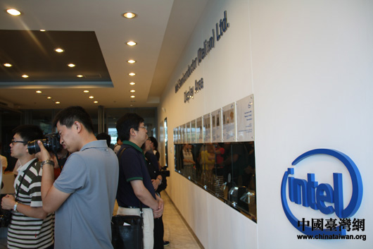 全国网媒记者参观英特尔芯片厂产片展览(中国台湾网 王文英 摄)