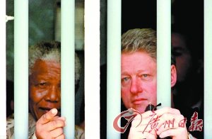1998年3月27日,克林顿和曼德拉一起探访曼德拉曾被囚禁的地方。 (资料图片)