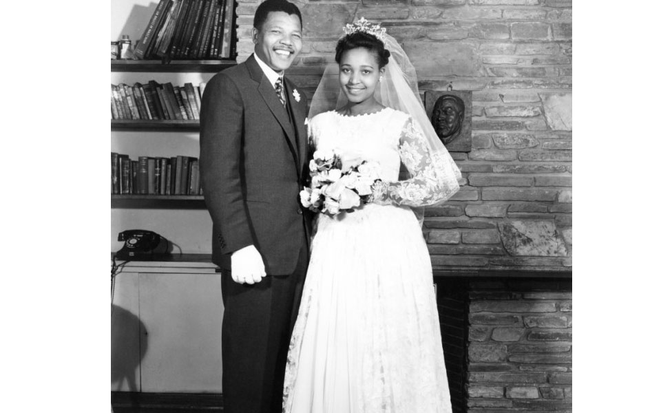 1958年,曼德拉与年轻漂亮的温妮一见钟情,不久就走入婚姻殿堂。图为曼德拉和温妮的结婚照。二人于1996年离婚。