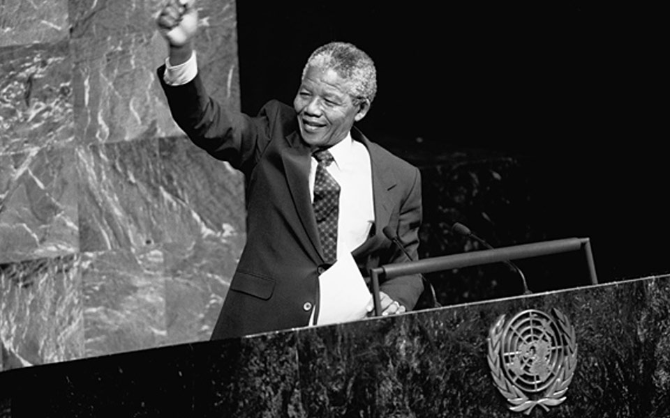 1990年6月22日,纽约联合国总部,南非反种族隔离领袖、南非非洲人国民大会(ANC)主席曼德拉发表演讲,获得掌声。曼德拉呼吁联合国维持对南非的制裁,直到种族隔离制度被废除。1991年,他与南非总统德克勒克一起获得了联合国科教文组织颁发的"乌弗埃-博瓦尼争取和平奖";1993年10月,曼德拉与德克勒克一起荣获"诺贝尔和平奖"。
