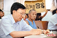 台当局“行政院长”刘兆玄21日至收容中心与灾民座谈,灾民多表达强烈返乡意愿。来源:台湾《苹果日报》