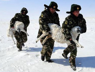 锡林郭勒盟遭“白毛风”干警找回走失母羊