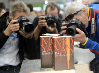 | 10月11日晚9时,身着浅灰色西服的莫言出现在山东高密县城的凤都商务酒店二楼,迎接他的除了一片掌声外,还有记者最渴望获知的问题,“今天您到哪里去了,为什么不出来回应?”
