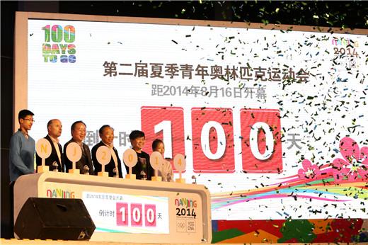 2014年5月10日上午,由南京青奥组委文化教育部、市场开发部联合主办、可口可乐公司承办的南京青奥会倒计时100天纪念活动在江苏城市职业学院应天校区体育馆举行。南京市委常委、常务副市长、南京青奥组委常务副秘书长刘以安,南京市副市级领导、南京青奥组委副秘书长徐传德,可口可乐大中华区及韩国区董事长鲁大卫出席纪念活动。著名音乐制作人、歌手常石磊现场为青奥会献歌,活动还为“我梦想中的青奥会创意征集”获奖者颁奖,并发布青奥与可乐组合标。来自江苏城市职业学院、南师附中新城初级中学的学生以及自发前来的市民共1000多人参与活动。