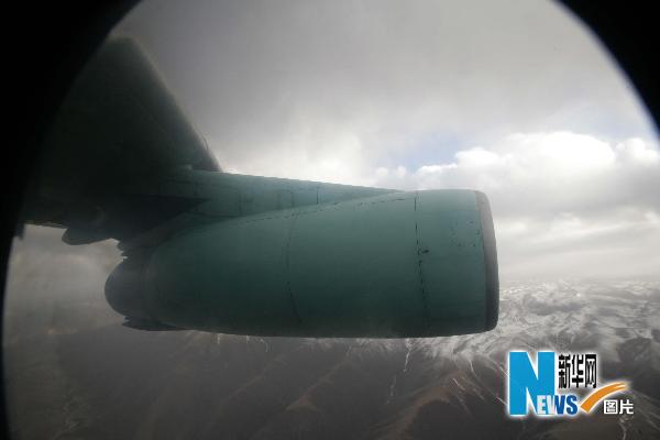 4月14日,四川救援队乘坐的运输机飞越雪山,挺进玉树地震灾区。 4月14日19时44分,空军运输航空兵某师谢昌强机组运送四川救援队52名救援队员和设备,从成都空军某机场起飞后顺利抵达玉树机场。新华社发(刘应华 摄)