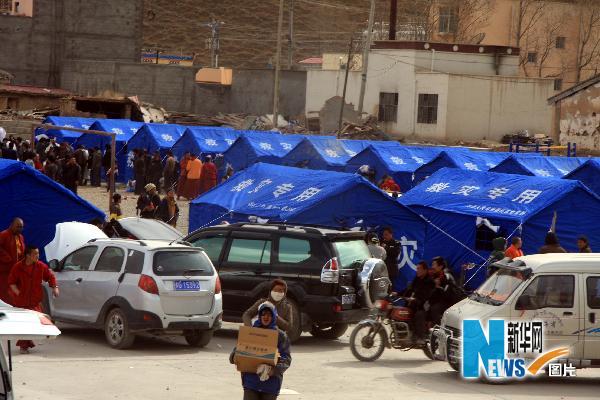 这是青海玉树地震灾区的集中安置点(4月14日摄)。新华社记者任晓刚摄
