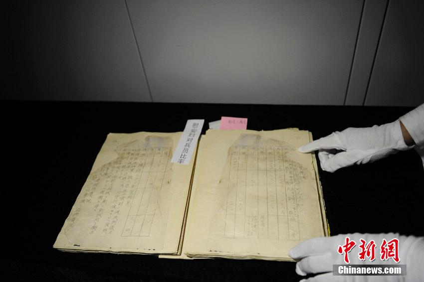 近日,吉林省档案馆公布了一批新整理、发掘的日本侵华档案,包括关东宪兵队司令部档案87件,伪满中央银行档案2件。档案共分八个方面:南京大屠杀、强征“慰安妇”、731部队“特别移送”、残酷奴役劳工、日军暴行、对中国东北实施移民侵略、镇压东北抗日联军、审讯和虐待英美战俘。图为吉林省档案馆工作人员在展示馆藏的日本侵华档案。张瑶 摄