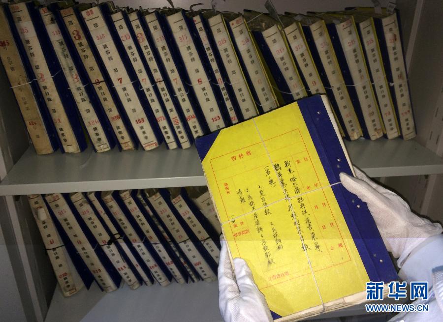 这是吉林省档案馆馆藏的日军侵华史料(4月23日摄)。针对吉林省档案馆新发掘的一批日军侵华档案,由国内专家组成的工作组近日进行了审辨工作。专家认为,这批档案为揭露日本侵略罪行增添了新的铁证。据介绍,吉林省档案馆现存日本侵华档案65个全宗、近10万卷(件),其中绝大部分是日本侵华过程中自己形成的档案,真实记录和反映了日本侵华的各种罪恶活动,为揭露日本侵华战争的罪恶本质提供了大量确凿可信的历史证据。据吉林省档案馆馆长尹怀介绍,目前已经发掘的89件档案只是馆藏档案的冰山一角,随着翻译、整理工作的继续进行,还会有更多揭露日本侵略罪行的档案被发掘。新华社记者 林宏 摄