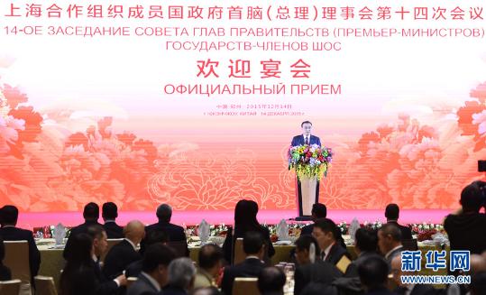 12月14日,国务院总理李克强在河南郑州为来华出席上海合作组织成员国政府首脑(总理)理事会第十四次会议的各国领导人举行欢迎宴会。这是李克强在欢迎宴会上致辞。新华社记者王晔摄