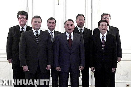 这是2001年9月14日,哈萨克斯坦共和国总统纳扎尔巴耶夫在阿拉木图会见出席上海合作组织成员国总理首次会晤的各国总理。 新华社发