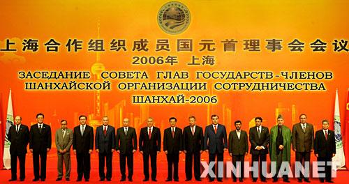 这是2006年6月15日,出席上海合作组织成员国元首理事会第六次会议的中国国家主席胡锦涛同与会其它国家和有关国际组织的领导人在会场合影。新华社发