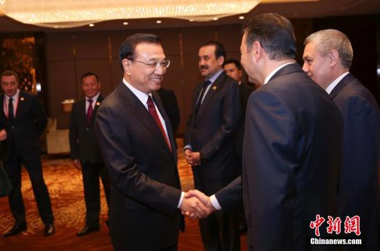 12月14日晚,中国国务院总理李克强在河南郑州为来华出席上海合作组织成员国政府首脑(总理)理事会第十四次会议的各国领导人举行欢迎宴会。宴会前,李克强同与会各国领导人共同参观河南省与上合组织成员国合作成果展,详细听取河南省负责人介绍有关情况,并同各国领导人进行了亲切交流。 中新社记者 刘震 摄